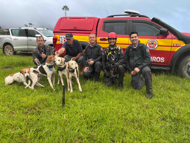 Para chegar até o ponto onde os cães se encontravam, as equipes de resgate precisaram percorrer cerca de três quilômetros a pé em meio à mata fechada.