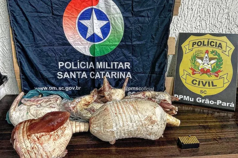 Munições e cinco tatus congelados foram apreendidos pela Polícia Civil na tarde desta quinta-feira, dia 13, no município de Grão-Pará. O alvo da ação, que teve apoio da Polícia Militar (PM) foi um homem de 49 anos, investigado por crime ambiental.